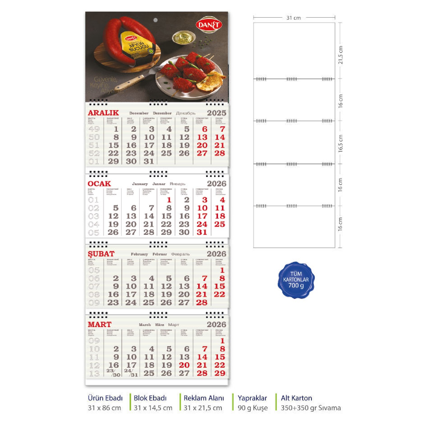 - Verilen Fiyat Baskısız Takvim İçin Geçerlidir