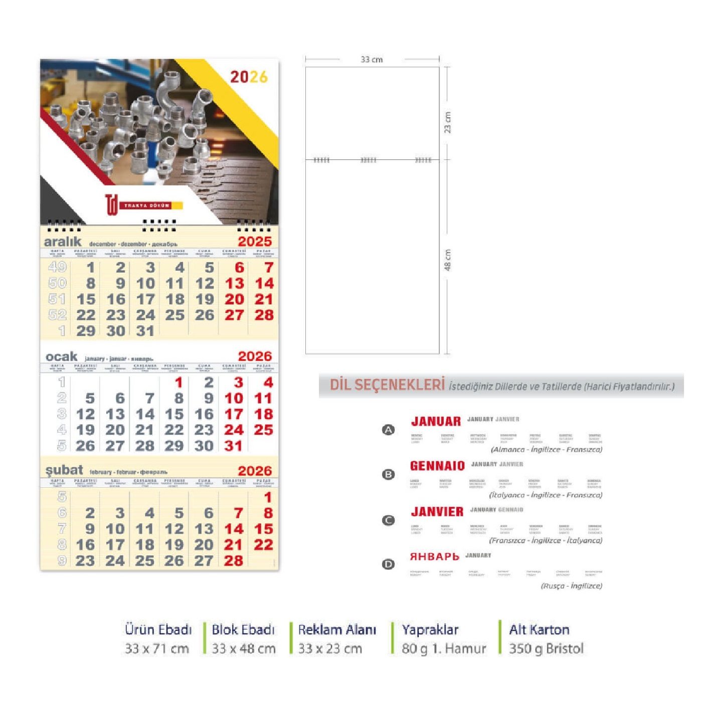 - Verilen Fiyat Baskısız Takvim İçin Geçerlidir
